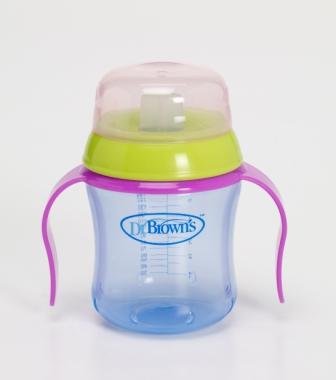 The Dr. Brown's Training Cups feature a Sip Activated Valve that is only activated by baby's mouth when drinking. There is no mess when baby is not drinking from this spill proof cup. All parts in the Dr. Brown's Trainer Cup System are interchangeable. The unique soft spout helps babies transition from bottle to cup. Cups are BPA free and dishwasher safe (top rack only). Contents include: 6oz/180ml cup, sip activated valve, soft spout cap, removable handles, protective lid and instructions.