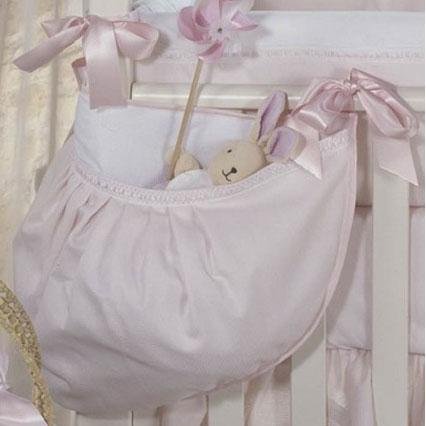 Picci Infant Nursry Bedding and accessories are hand sewn in Florence, Italy, the Petra collection is hand sewn with 100% Italian piquet cotton in pink and white with pink satin trim. This elegant collection offers a sophisticated Italian styling with pink satin ribbon trim that will add luxury and comfort to your little girl's nursery. The toy bag attaches to the crib with hand ties and is the sweetest way to conveniently keep all your baby daughter's important toys close. The beautifully detailed Toy Bag attaches easily to any crib with ties its made from 100% cotton piquet and can be washed to keep it looking new.