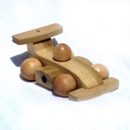 Speedy little car can keep up with your little racer all day. Start your engines and race over to pick up this adorably detailed wooden race car for your little speedway fanatic. Handcrafted of poplar with birch wheels this car is ready to tear it up. The special ball wheels allow the car to move swiftly over most surfaces even when steered by an excited toddler. The race car is approximately 3 1/2 inches long and 1 3/4 inches wide, the perfect size for little hands. Its coated with shellac for natural protection of the wood. Our toys do not contain ANY metal parts. For added durability weve used walnut dowel rods and nontoxic wood glue to create a safe toy that is sure to be enjoyed by any child age 3 and up. length: 3.5. height: 1.5. width: 2.125