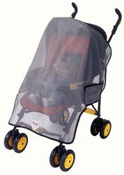 Sasha's Universal Wrap Around Single Stroller Sun Protector is designed to protect a baby's delicate eyes, skin and body from the wind, from up to 65% of the sun's harmful heat, glare, and Cancer Causing Ultraviolet UVA/UVB rays, and from most flying insects. It fits all standard size single stroller canopies with the four hook and loop location for easy attaching. The protector also includes two convenient storage pockets for small lightweight items. The mesh fabric allows parents to see in while baby can still see out. The protector is made of a high quality uniquely woven material, having an open texture, with evenly spaced small holes. They are treated with a special protective coating, and are completely safe.